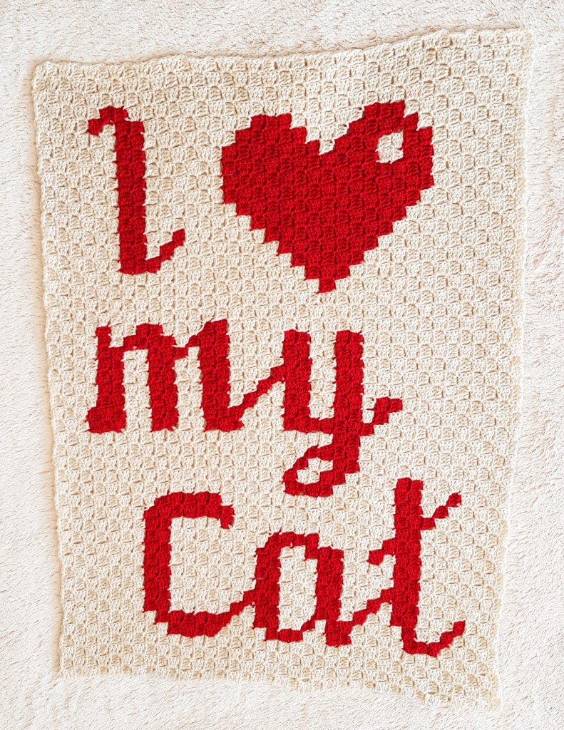 Welcome to my crochet blog! Today, I’m excited to share with you the pattern for the “I love my cat” corner to corner blanket. This blanket is the perfect way to show your feline companion how much you care, and it’s especially fitting as a Valentine’s Day gift for your cat. As a self-identified “crazy cat lady,” I know how much love and affection we have for our furry friends, and I love the idea of creating a large, cozy blanket that tells the world just how much we care for our cats. Whether you’re an experienced crocheter or a beginner, I hope you’ll find this pattern easy to follow and fun to make. Let’s get started!