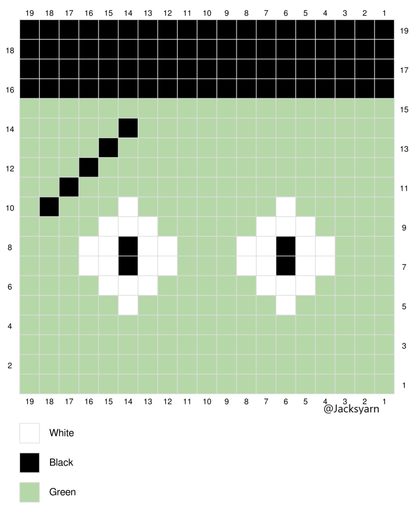 Each Square on the graph is 1 single crochet, at the end of each row chain 1 and turn (ch 1 doesn’t count as a stitch).