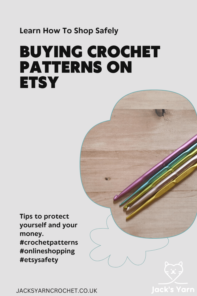 A cohesive shop aesthetic, including consistent branding and high-quality images, suggests a professional and dedicated crochet designer. This applies to all Etsy shops, both crochet pattern or physical items. If a shop is selling multiple types of items this could be a warning sign. Most of us creators spent years learning our craft, and it’s unlikely that we are going to be qualified in crochet, furniture making, pottery, graphic design and painting (some might well be, but most of us are not!). It’s also worth thinking about how diverse the pattern styles are. Is the shop selling brilliantly detailed amigurumi patterns, blanket patterns, clothing patterns of all different styles. This could be sign of a drop shipper, or someone who is stealing patterns and graphics and reselling them.
