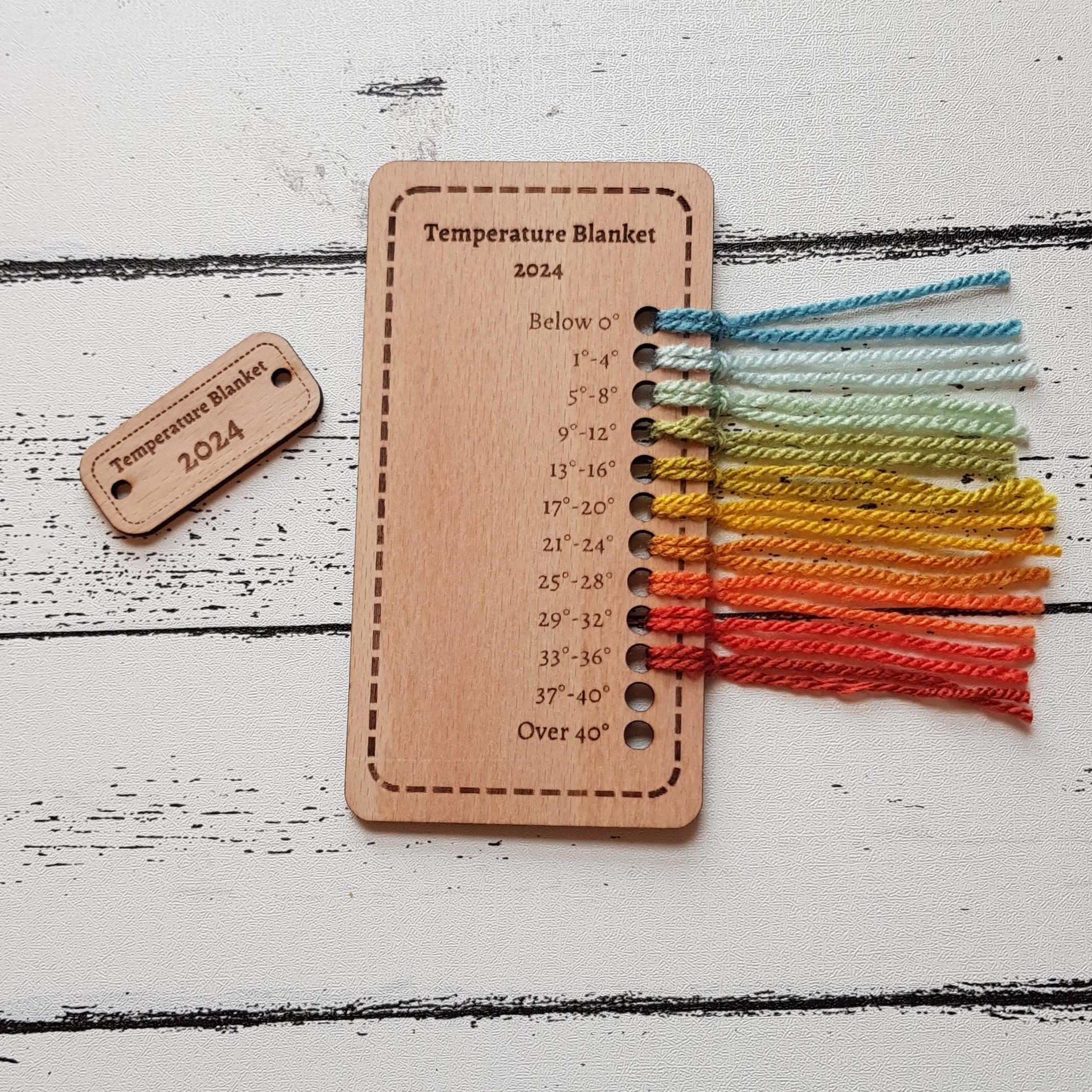 After that, it was all about getting my supplies ready. I invested in a small wooden shade card from The Wood Store on Etsy, which helped me plan out the yarn colors and assign them to each temperature range. This way, I always know which color I’m meant to be using, and it keeps me organized and on track.