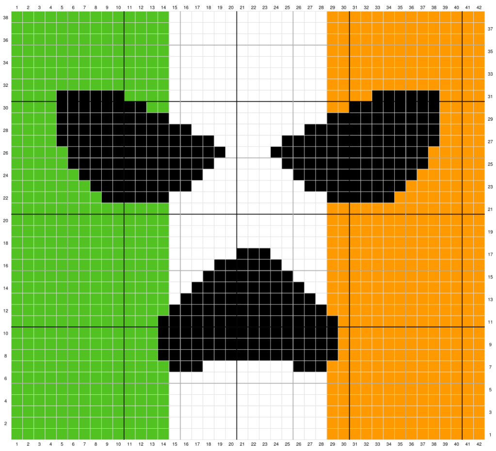 ← Row 27 [RS]: (Orange) x 4, (Black) x 14, (White) x 6, (Black) x 14, (Green) x 4